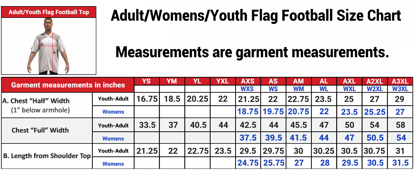 Our Traditional Flag Football Jersey is designed with a V-neck and yoked shoulders for a classic athletic football look. This jersey is tailored for high-performance play and has been upgraded to a 2 Way Stretch, snag resistant Flatback Mesh fabric for enhanced ventilation and durability.