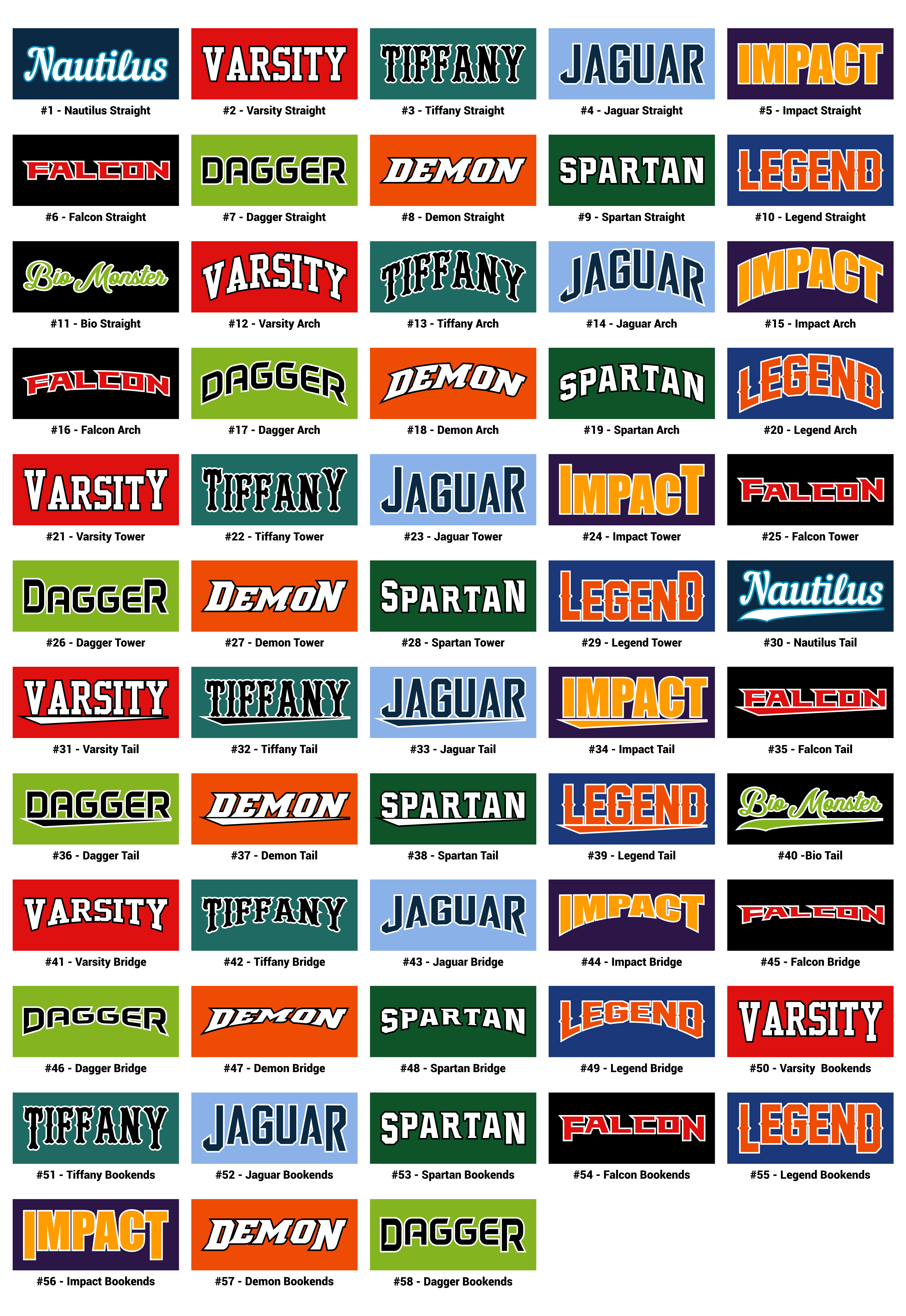 Description THIS DECORATION PRODUCT INCLUDES: 1 or 2 Color Team Name 1 or 2 Color Back Number (1 or 2 digits) View Team Name Layouts PRICE IS PER JERSEY